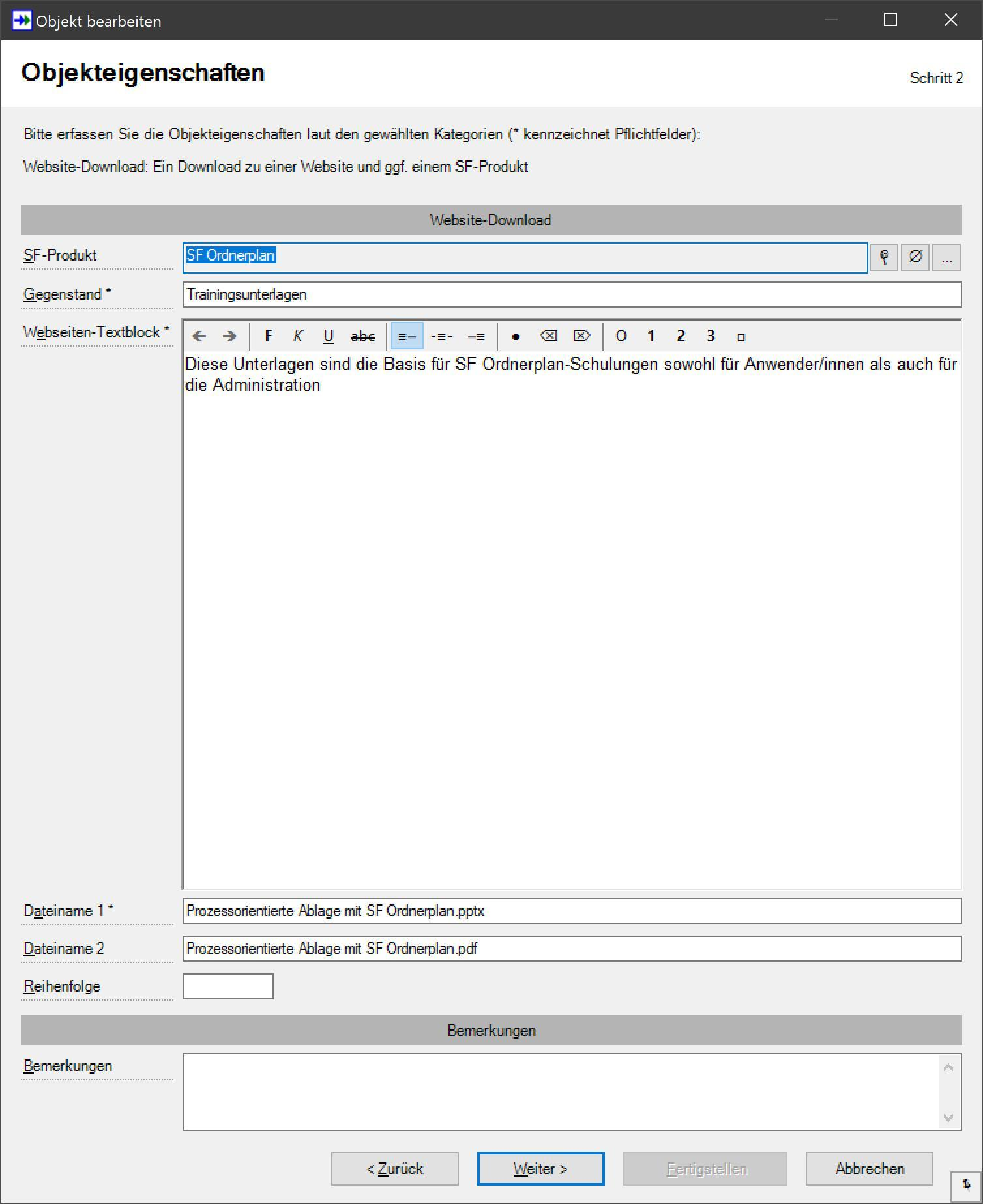 Der Fließtext ist ein Feld vom Typ Formatiertes Memo in SF Ordnerplan, in dem wir also Überschriften, Aufzählungen etc. leicht editieren können. SF Ordnerplan speichert formatierten Text intern automatisch sowohl im Richt-Text-Format (RTF) als auch in HTML - letzteres nutzen wir für die Website aus.